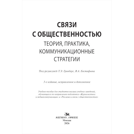 Учебное пособие отражает основные направления изучения связей с общественностью в контексте коммуникационной концепции. В пособии рассмотрены вопросы теории и методологии связей с общественностью, сущность, функции, принципы, структура институтов связей с общественностью, особенности и принципы корпоративной информации. Особое внимание уделено технологиям паблик рилейшнз, стратегиям управления персональным и корпоративным имиджем. В самостоятельной главе анализируются принципы взаимодействия с ключевыми аудиториями связей с общественностью: средствами массовой информации и корпоративной аудиторией . В учебном пособии также детально освещены связи с общественностью в условиях гражданского общества, в политике и бизнесе и современные реалии и тенденции развития связей с общественностью. Для студентов факультетов журналистики, обучающихся по специальностям «Журналистика и медиакоммуникации» и «Реклама и связи с общественностью».
