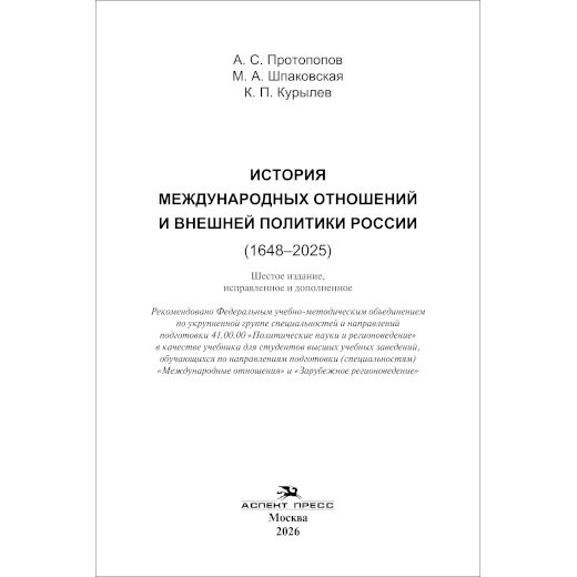 Это шестое издание учебника, выходящего в издательстве «Аспект Пресс» с 2001 г. В исправленное и дополненное издание включен раздел «Международные отношения в XXI веке». Рассмотрена эволюция международной системы от этапа ее однополярной модели и до складывания многополярного мира. Особое внимание уделено холодной войне 2.0 и гибридной борьбе коллективного Запада против России. Рассматриваются тенденции формирования так называемой «новой биполярности» в контексте отношений США и КНР. Это дало возможность авторам более подробно изложить историю ХХ в. и довести ее до 2025 г. В новом издании полностью переработан список рекомендуемой литературы — использован ряд материалов, ставших достоянием лишь в последние годы. Понимая, что не всегда мнения авторов и их оценки совпадают с мнением читателей, были приведены различные мнения специалистов по отдельным проблемам. Для студентов-международников, историков, политологов и иных гуманитарных специальностей вузов.