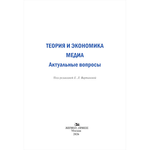 Коллективная монография представляет собой комплексное исследование современных трансформаций медиаиндустрии. Издание структурировано по трем разделам. В разделе «Теория» рассматриваются трансформации методологических и концептуальных подходов при изучении современной медиакоммуникационной индустрии. Раздел «Экономика» посвящен анализу бизнес-моделей и финансовых стратегий медиакомпаний. В разделе «Практики креативных индустрий» отражены многоплановые вопросы функционирования медиа: от применения искусственного интеллекта в журналистике до нормативного регулирования креативных индустрий в России. Монография адресована исследователям медиа, преподавателям, студентам профильных направлений вузов, а также практикам медиаиндустрии, заинтересованным в глубоком понимании современных процессов в медиасфере.